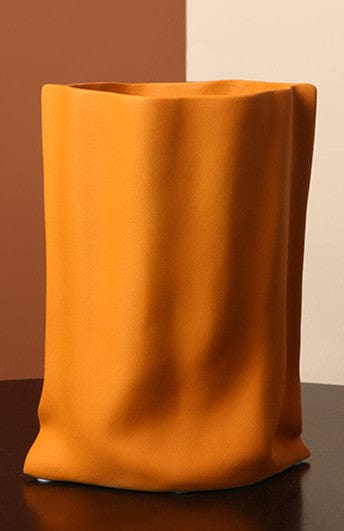 Vase Moderne Orange Céramique – Style Froissé Flacons Bouquets